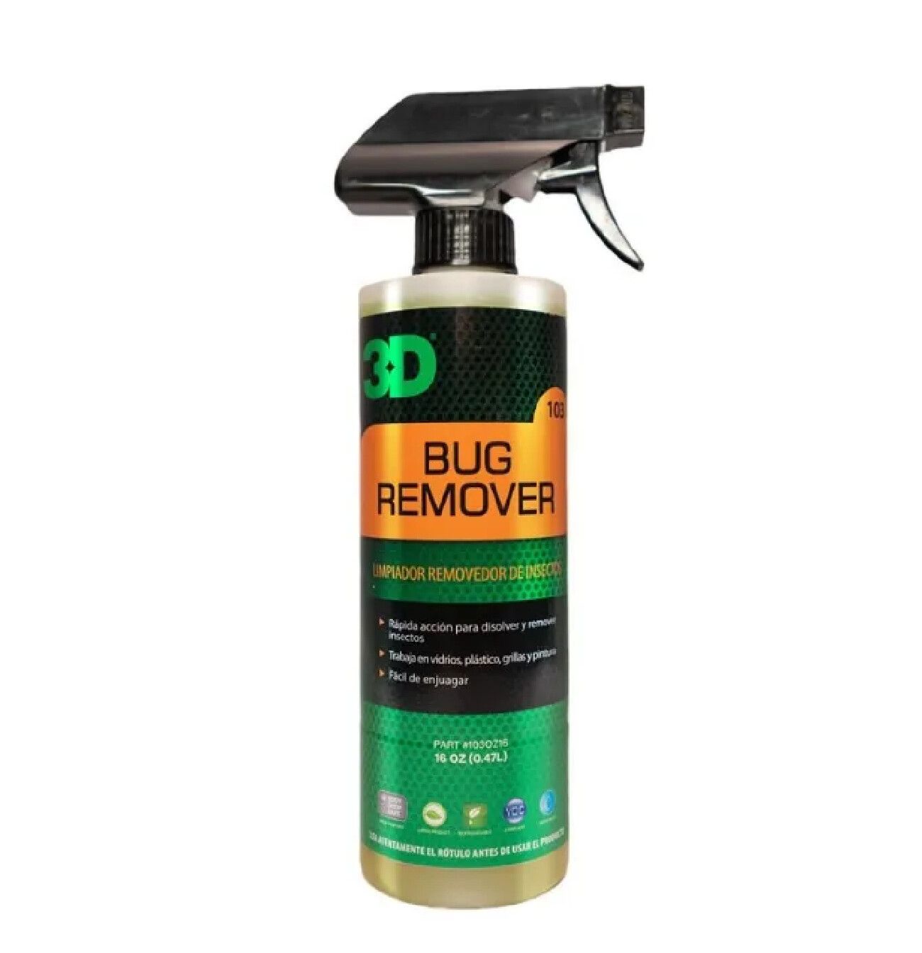 3D BUG REMOVER está especialmente diseñado para remover los residuos generados por insectos en todo tipo de superficies. Este producto a base de enzimas remueve rápidamente las manchas producidas por las proteínas de dichos insectos, incluso aquellas adheridas firmemente por efecto del sol o el paso del tiempo.