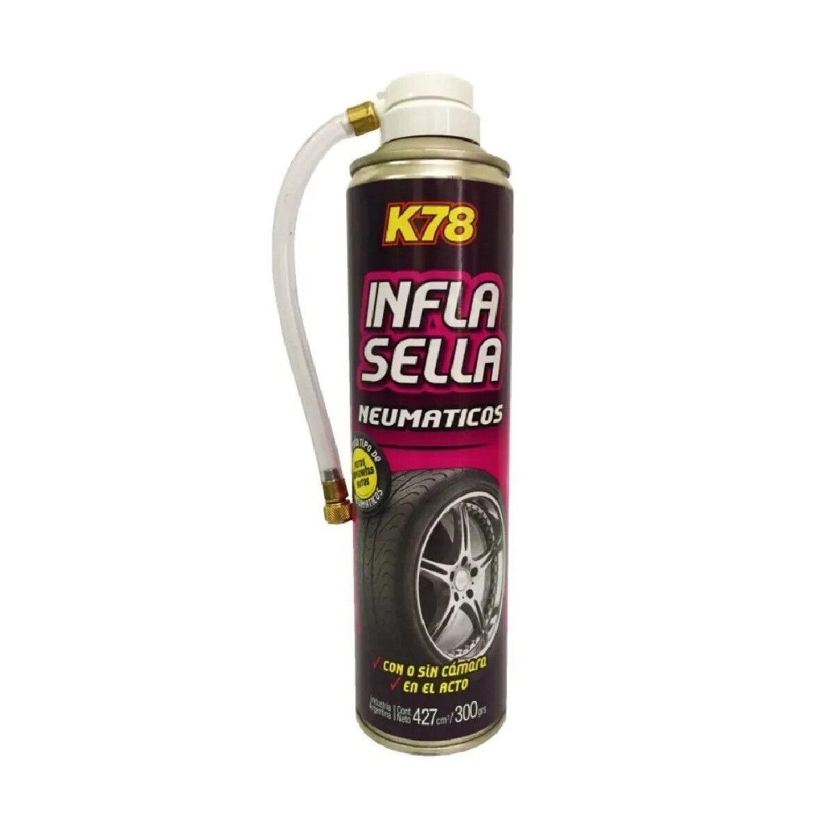 Infla Sella K78 está indicado para un efectivo y rápido sellado de pinchaduras y pérdidas de presión en neumáticos.