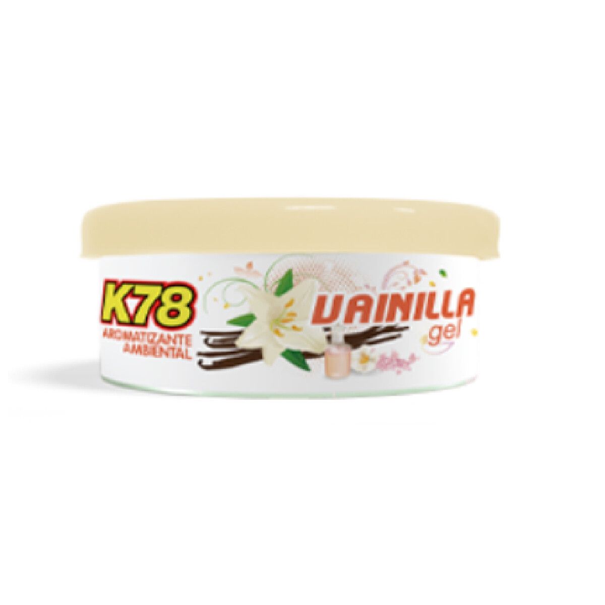 Aromatizante en Gel K78 para autos y ambientes. Su fórmula asegura una fragancia suave y fresca en el ambiente a aromatizar durante 30-45 días.